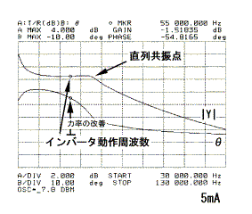 また、このインバータのトランスの一次側から見たアドミタンス・位相特性を図4-1に示す。